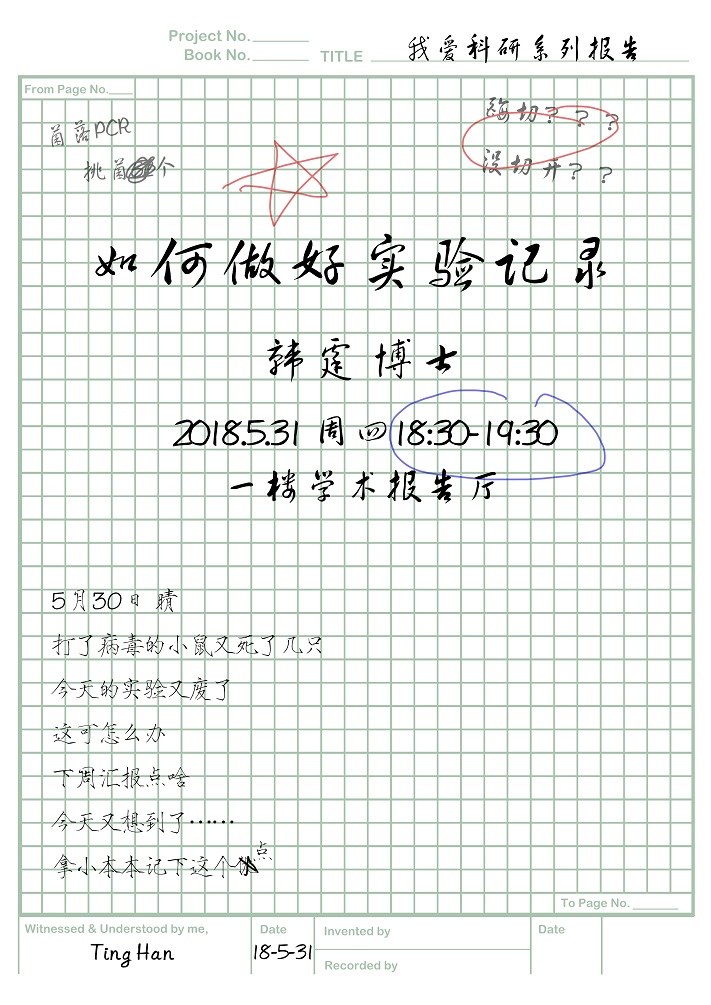 “我爱科研”系列讲座第二期——如何做好实验记录