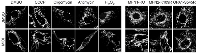 MIDI 促进线粒体融合并且抑制应激和遗传突变导致的线粒体分裂。